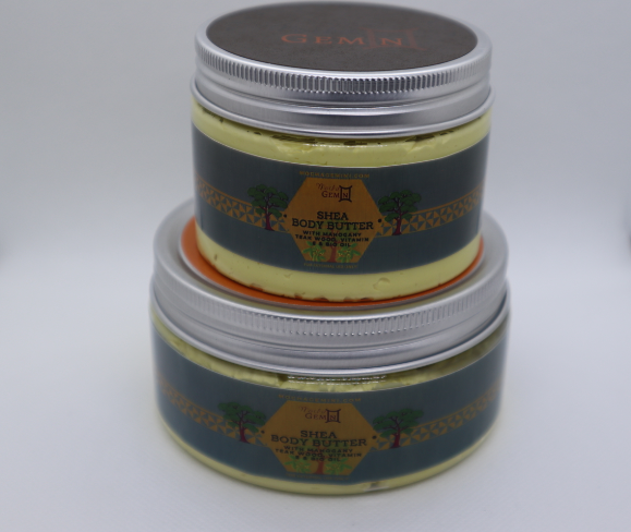 100% Natural Whipped Shea Butter, scented with Mahogany Teakwood with healing oils.